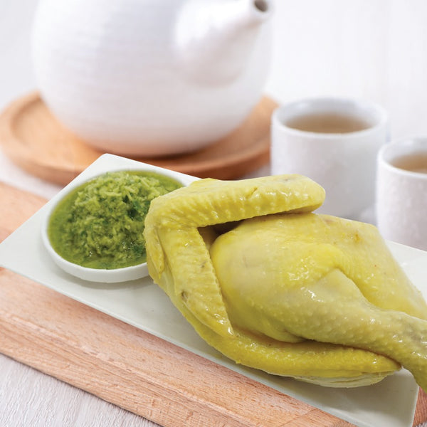 Each packet comes with half a steamed kampong chicken (local chicken, which is free from antibiotics and growth hormones) and a packet of Ginger Scallion Sauce. The Steamed Kampong Chicken’s skin is springy while the meat is soft, juicy, and silky smooth. It also comes with a handmade Ginger Scallion Sauce! This. The ginger used are specially selected young ginger, and are slowly peeled and minced by hand to ensure that the fragrant of the ginger are all well marinated into the sauce. Coupled with top-grade sesame oil, the Ginger Scallion sauce is absolutely heavenly! You can pair the Steamed Kampong Chicken and handmade Ginger Scallion Sauce together with lettuce and sliced cucumber for the extra crunch.