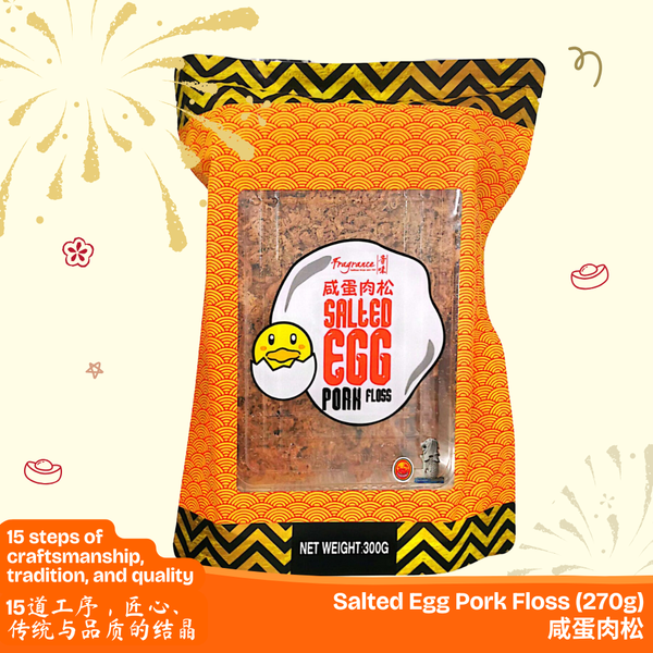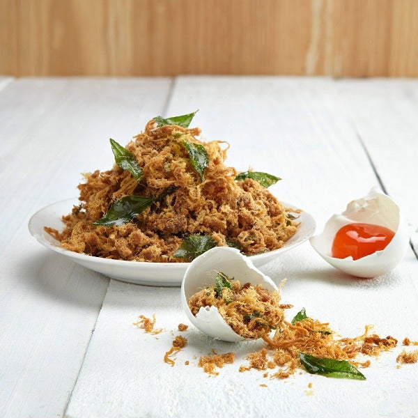 Our Crispy Pork Floss with Salted Egg combines a light, crunchy pork floss texture with the savoury richness of salted egg. The flavour is balanced to complement dishes without overpowering them, making it suitable for both traditional and modern recipes.