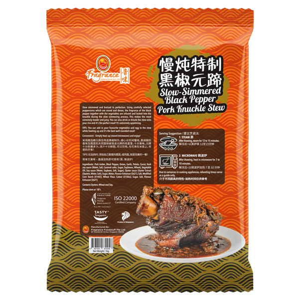 Slow simmered and braised to perfection. Using carefully selected peppercorns which are round and dense, the fragrance of the black pepper together with the vegetables are infused and locked into the knuckle during the slow simmering process. This makes the meat extremely tender and juicy. You can also drink or drizzle the stew onto your rice and it's the perfect meal! It’s extremely appetising. Super delicious! Must try!